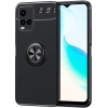 Vivo Y33s Kılıf Renkli Silikon Yüzüklü Standlı Auto Focus Ravel Kapak - Kırmızı - Siyah