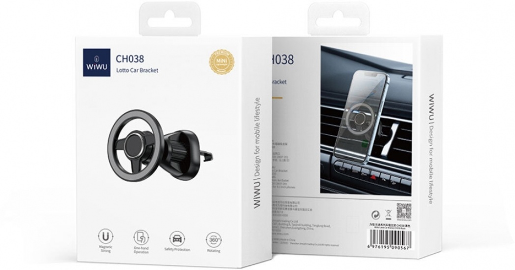 Wiwu CH038 Lotto Serisi Havalandırma Tasarım Magnetik Araç Telefon Tutucu - Siyah