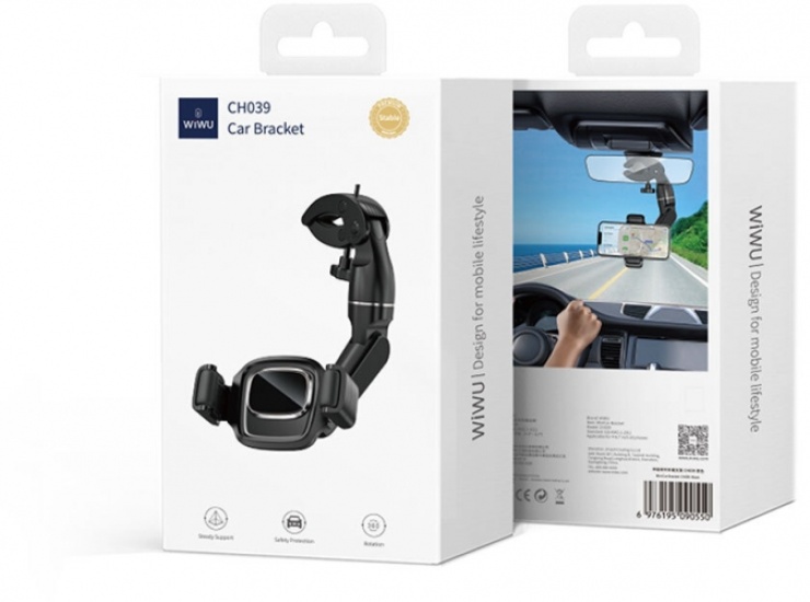 Wiwu CH039 Araç İçi Dikiz Aynası 360 Derece Dönebilen Oynar Başlıklı Telefon Tutucu - Siyah