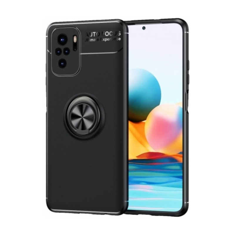 Xiaomi Redmi Note 10s Kılıf Renkli Silikon Yüzüklü Standlı Auto Focus Ravel Kapak - Siyah