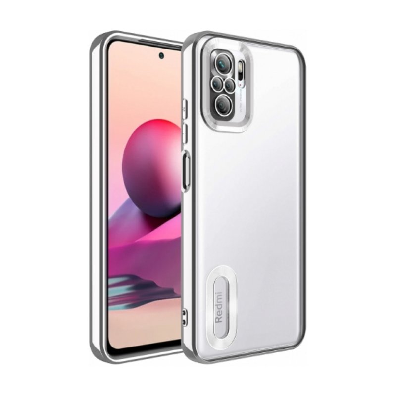 Xiaomi Redmi Note 10s Kılıf Kamera Lens Korumalı Şeffaf Renkli Logo Gösteren Parlak Kapak - Gümüş