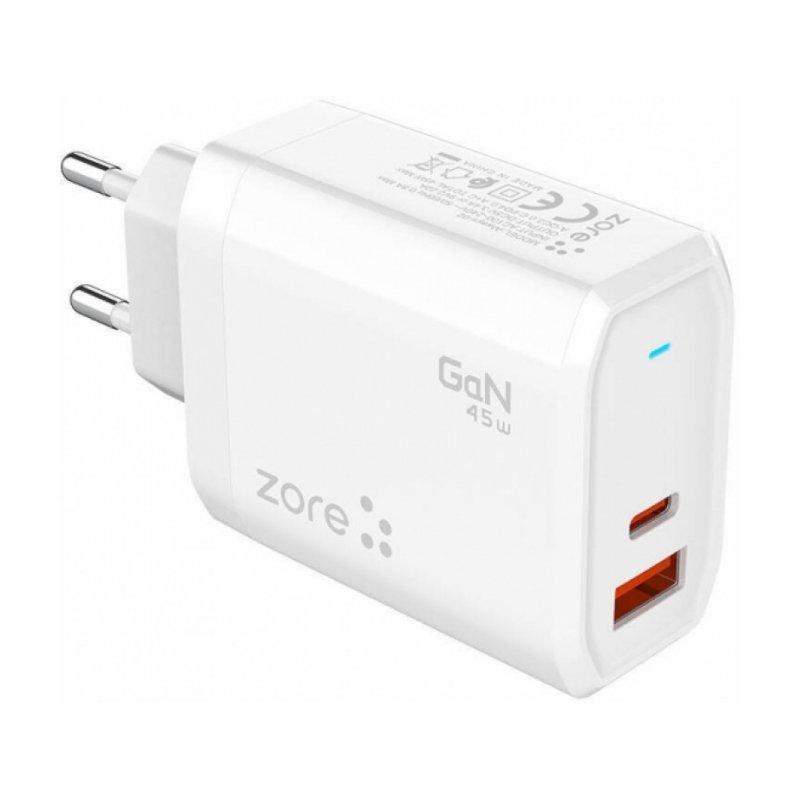 Zore Always-02 GaN Tech Type-C PD4.0 USB-A QC3.0 Hızlı Şarj Özellikli Seyahat Şarj Başlığı 45W - Beyaz