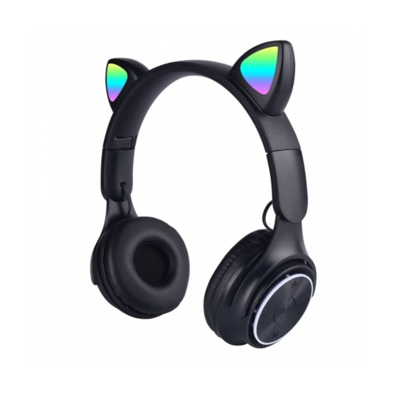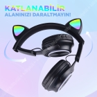 Zore M6 Pro Cat RGB Led Işıklı Kedi Kulağı Band Tasarımlı Ayarlanabilir ve Katlanabilir Kulak Üstü Bluetooth Kulaklık - Siyah