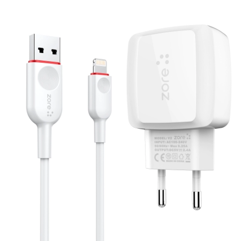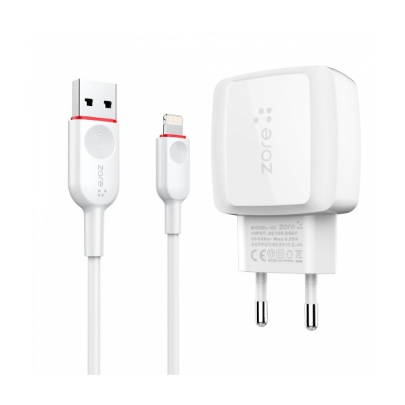 Zore Vest Serisi V2 Apple Lightning 2 in 1 Hızlı Şarj Seti 2.4A/12w - Beyaz
