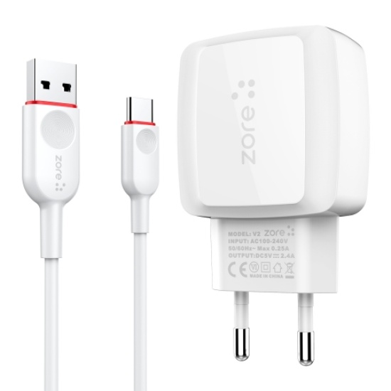 Zore Vest Serisi V2 Type-C 2 in 1 Hızlı Şarj Seti 2.4A/12w - Beyaz