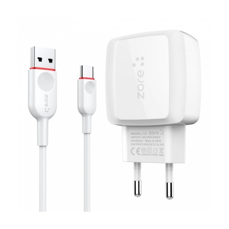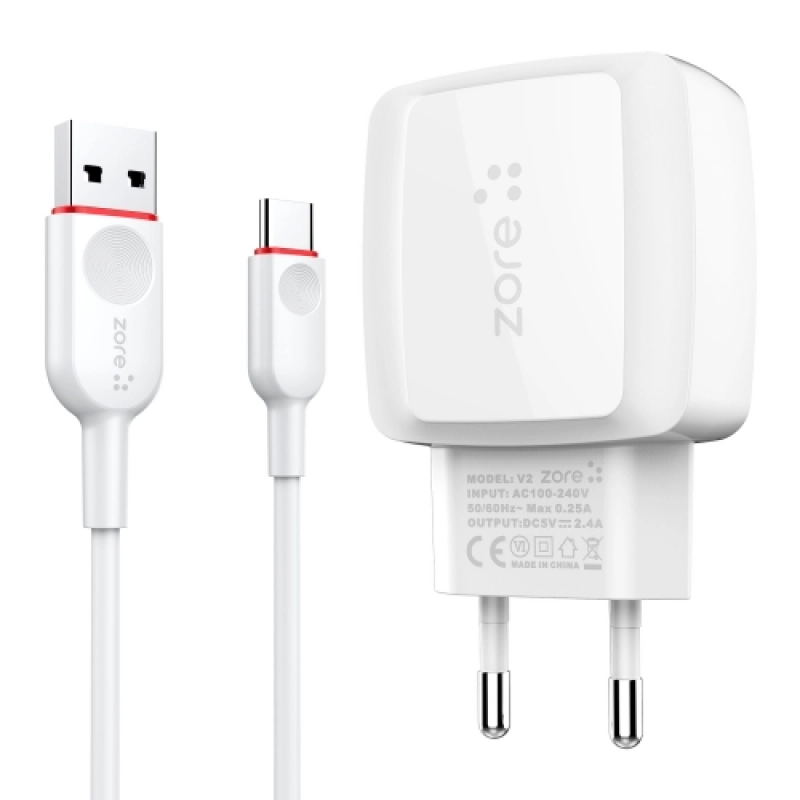 Zore Vest Serisi V2 Type-C 2 in 1 Hızlı Şarj Seti 2.4A/12w - Beyaz