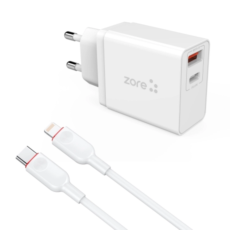 Zore xMac Serisi Apple Lightning 2 in 1 Hızlı Şarj Seti Type-C PD QC 3.4A/18w - Beyaz
