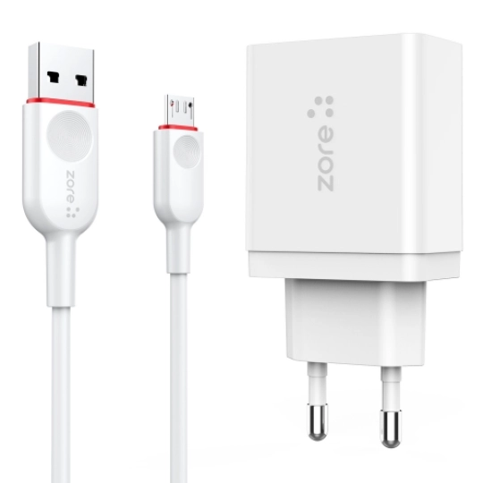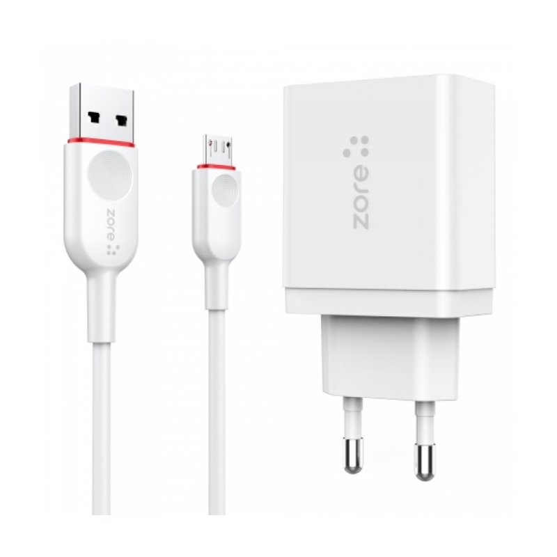 Zore xMac Serisi Micro-USB 2 in 1 Çift Giriş Hızlı Şarj Seti QC 3.4A/18w - Beyaz