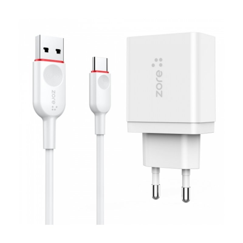 Zore xMac Serisi Type-C 2 in 1 Çift Giriş Hızlı Şarj Seti QC 3.4A/18w - Beyaz